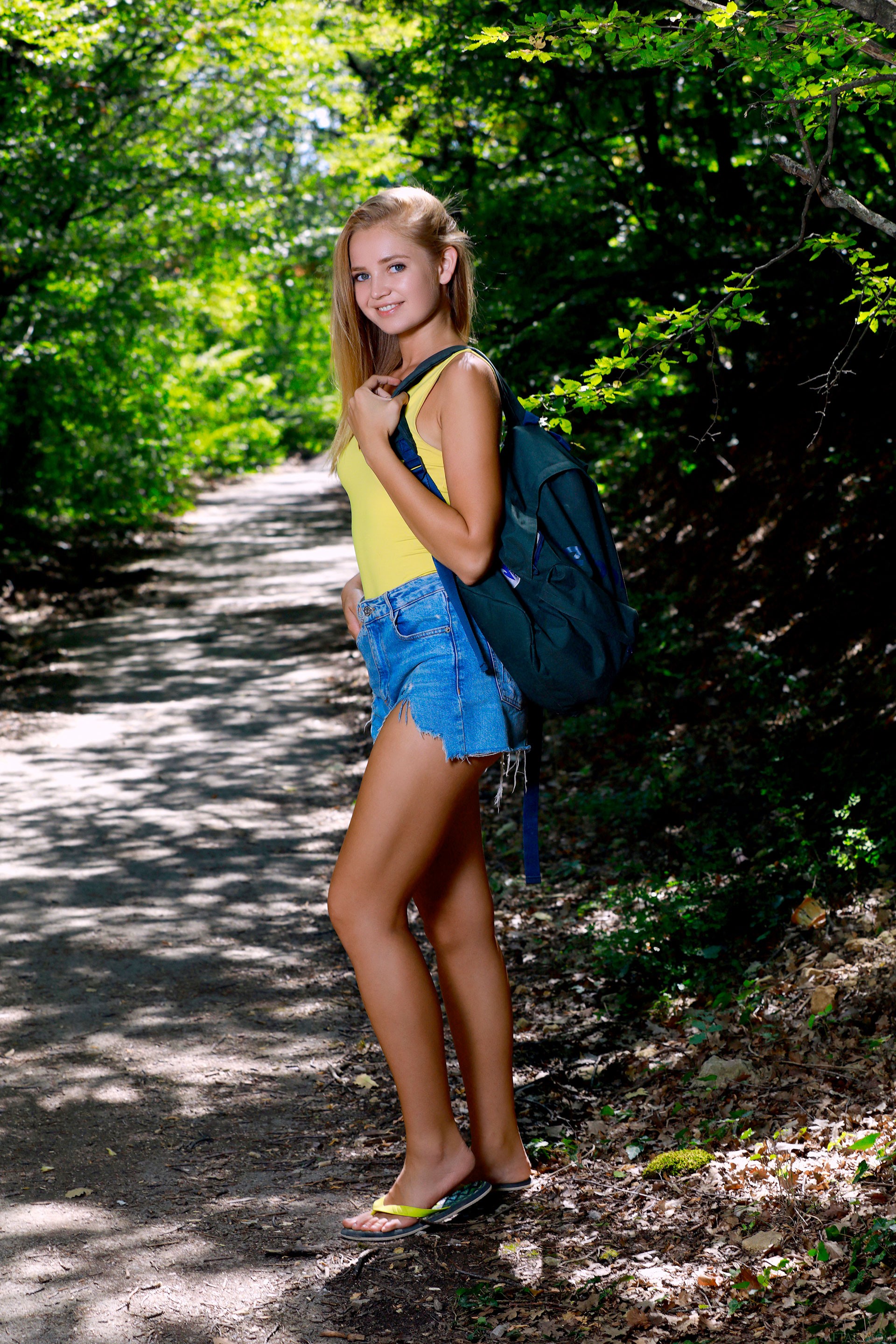 Девушка показала пизду в лесу.