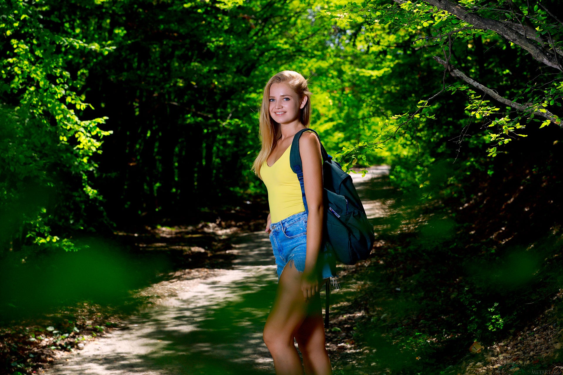 Голая Анфиса позирует на свежем воздухе.