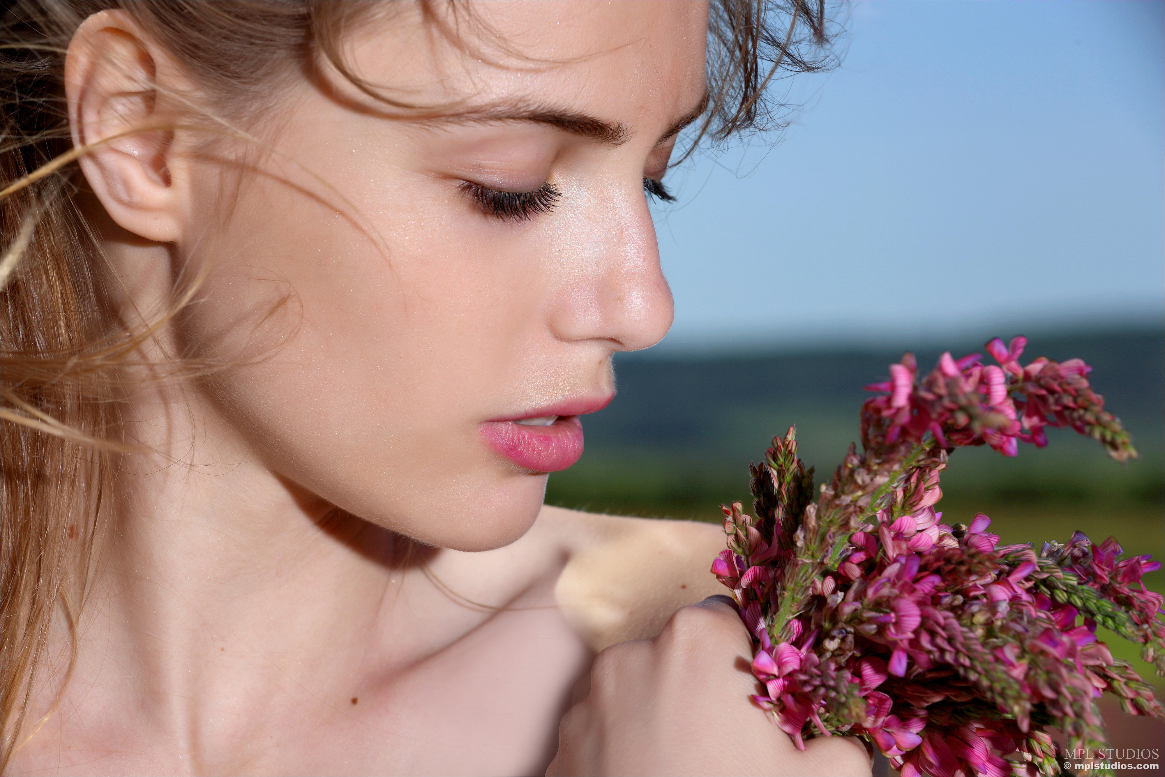 На фото девочка целочка обнажилась в поле.