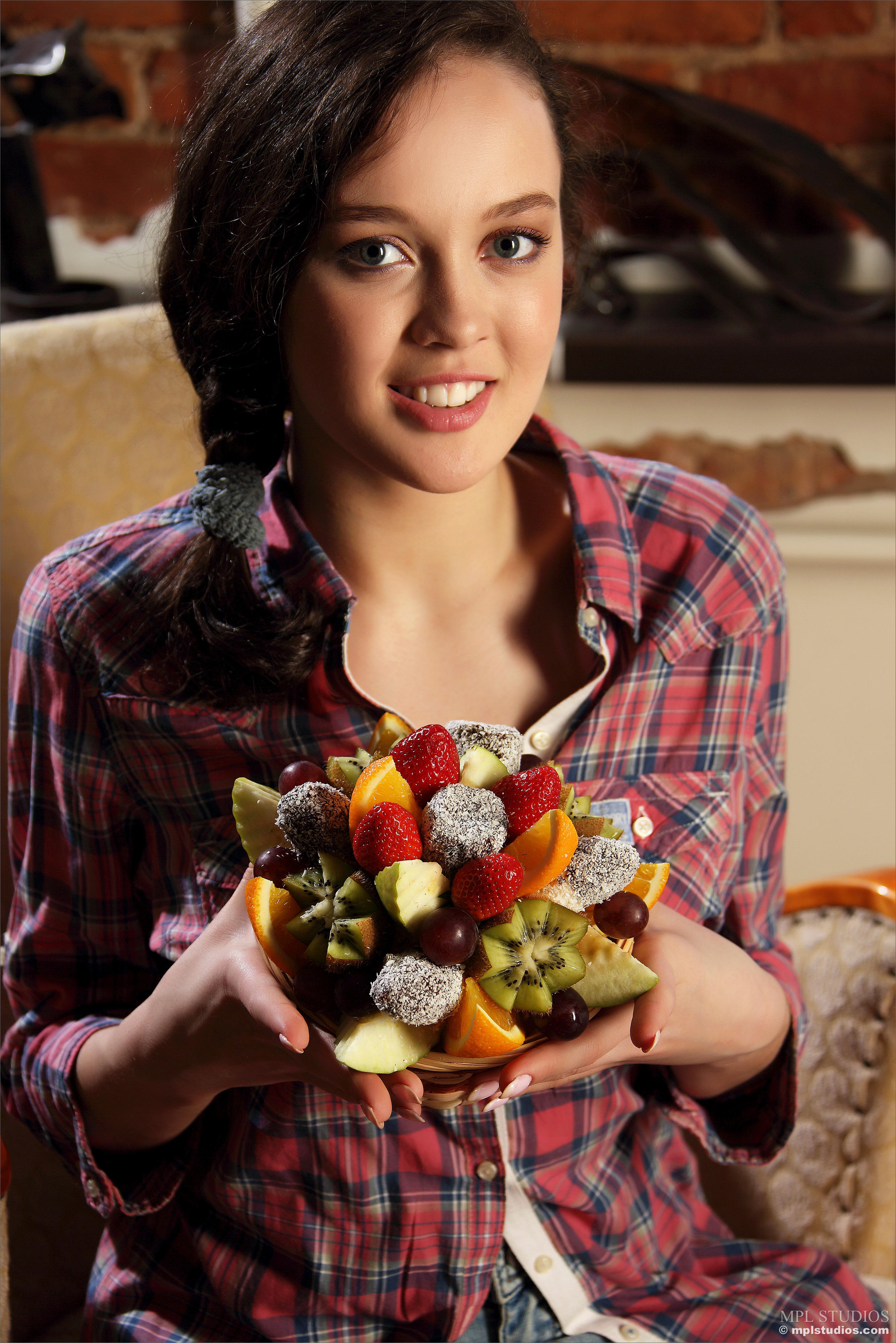 Фото пиздёнки красивой девушки с тарелкой фруктов.