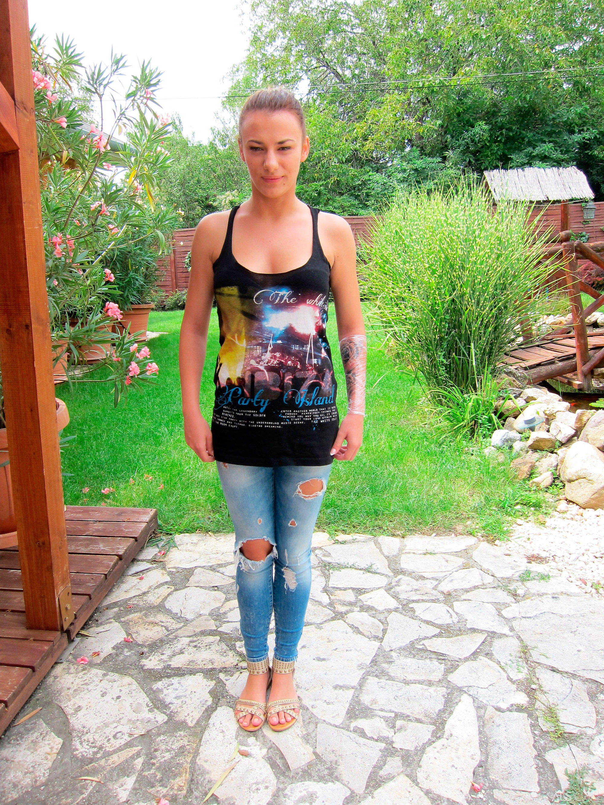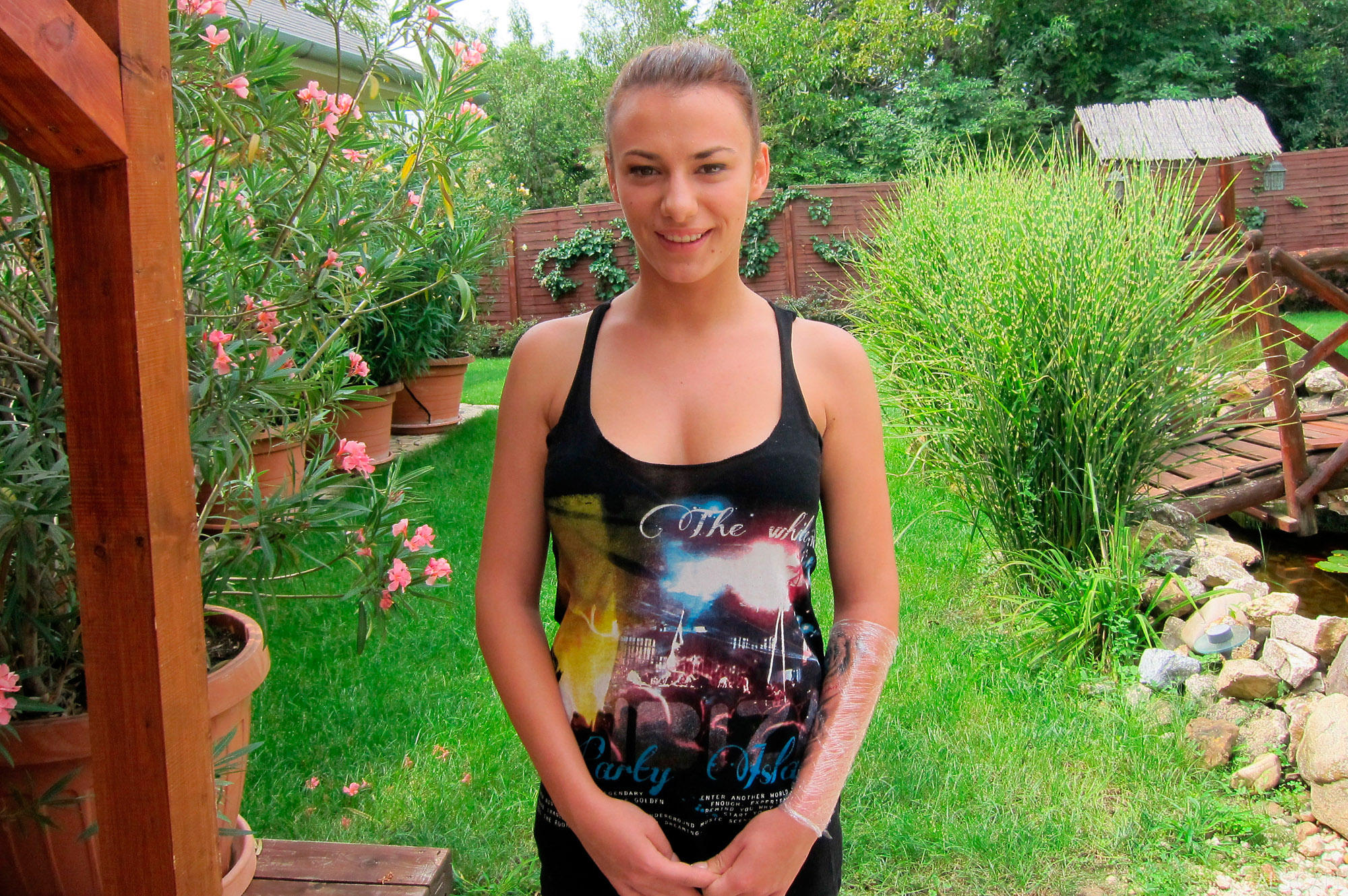 Зеленые глаза, красивая улыбка, плоский животик, загадочная татуировка-изюминка – у этой брюнетки имеется шанс пройти сквозь твой кастинг девушек, не правда ли?