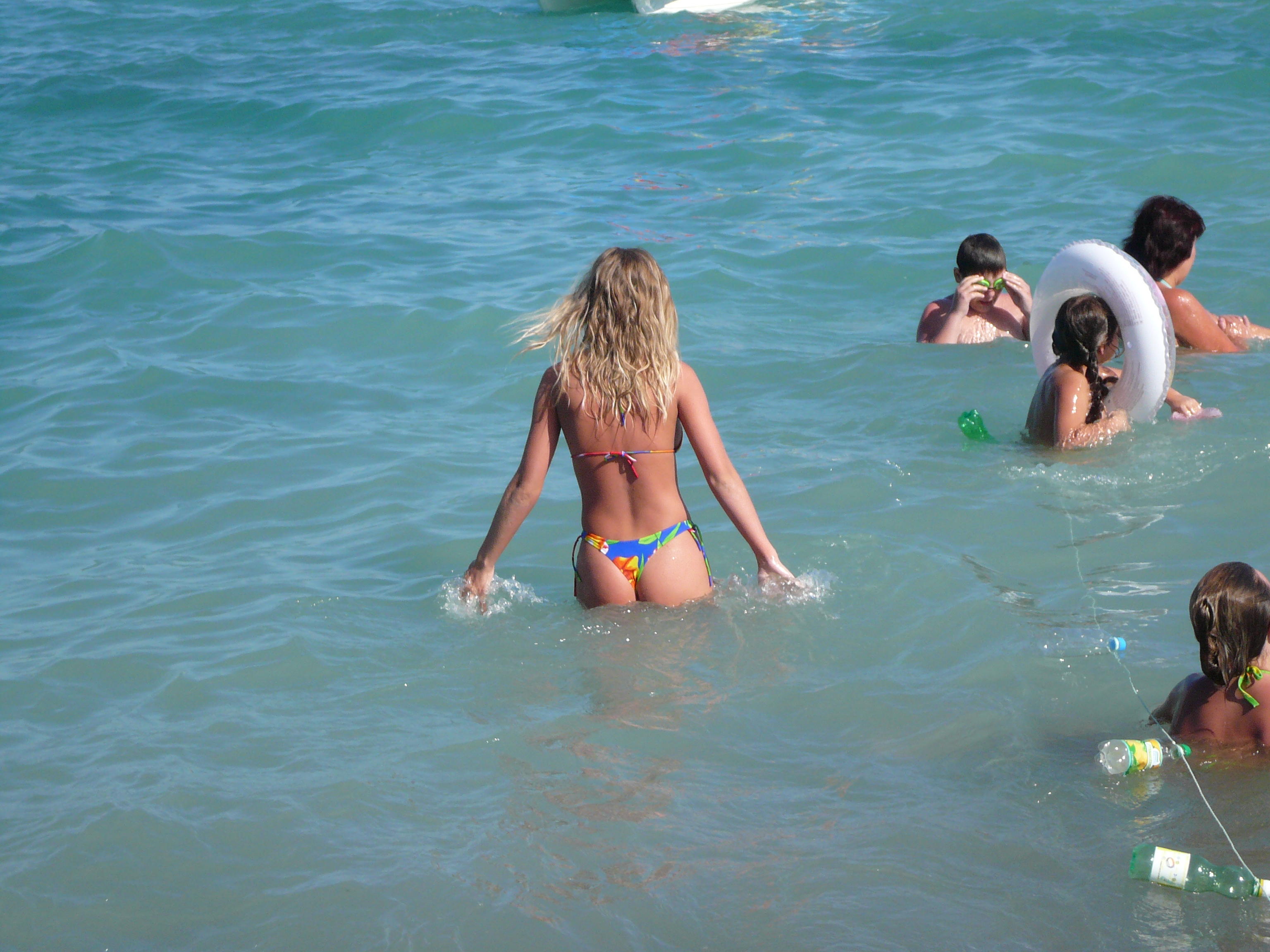 Пестрый купальник, неплохие формы и загорелое тело – разве такую красавицу не желается взять и использовать?