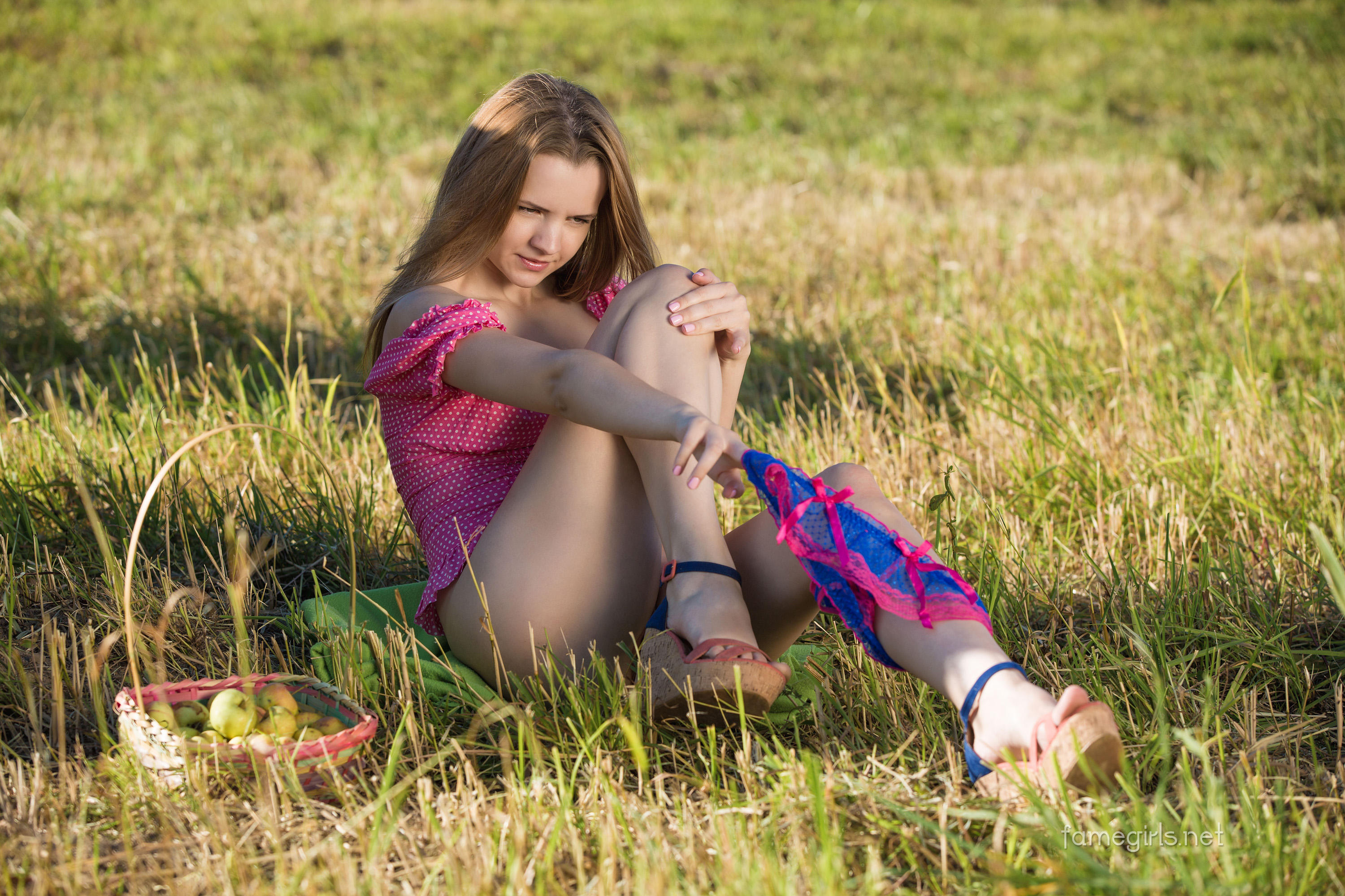 Молодая пиздёнка оголяется на скошенном поле.