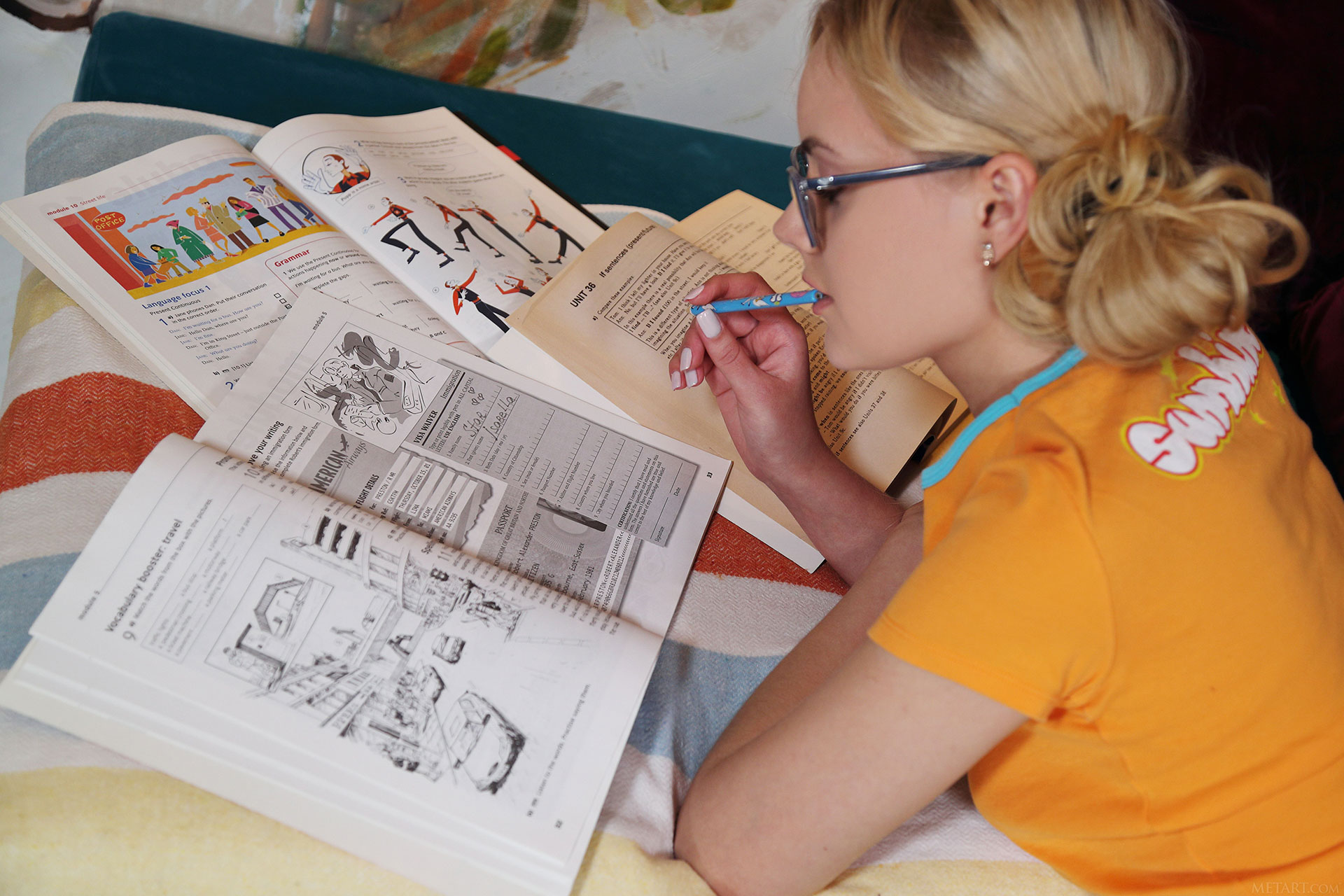 На фото голая ученица отдыхает после уроков.