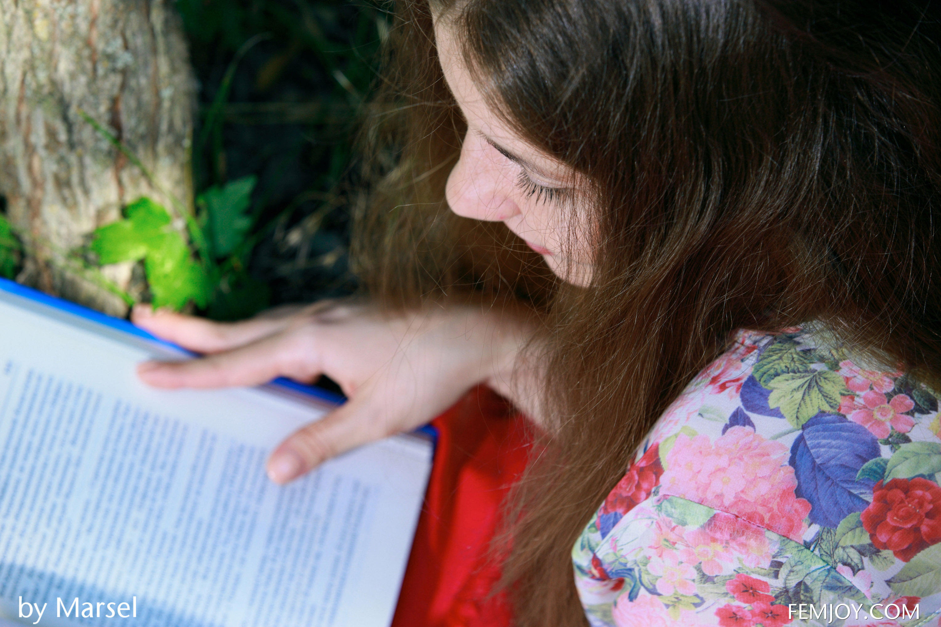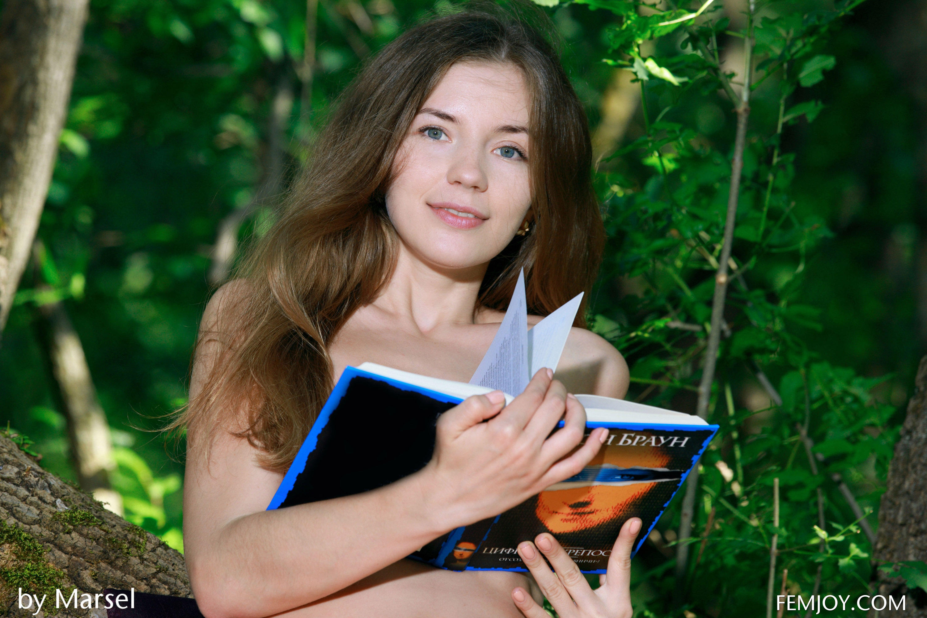 Ну, и в-третьих, слегка пролистав книгу, тёлка раздевается, чем окончательно признает: в лес она пришла для сексуальных утех.