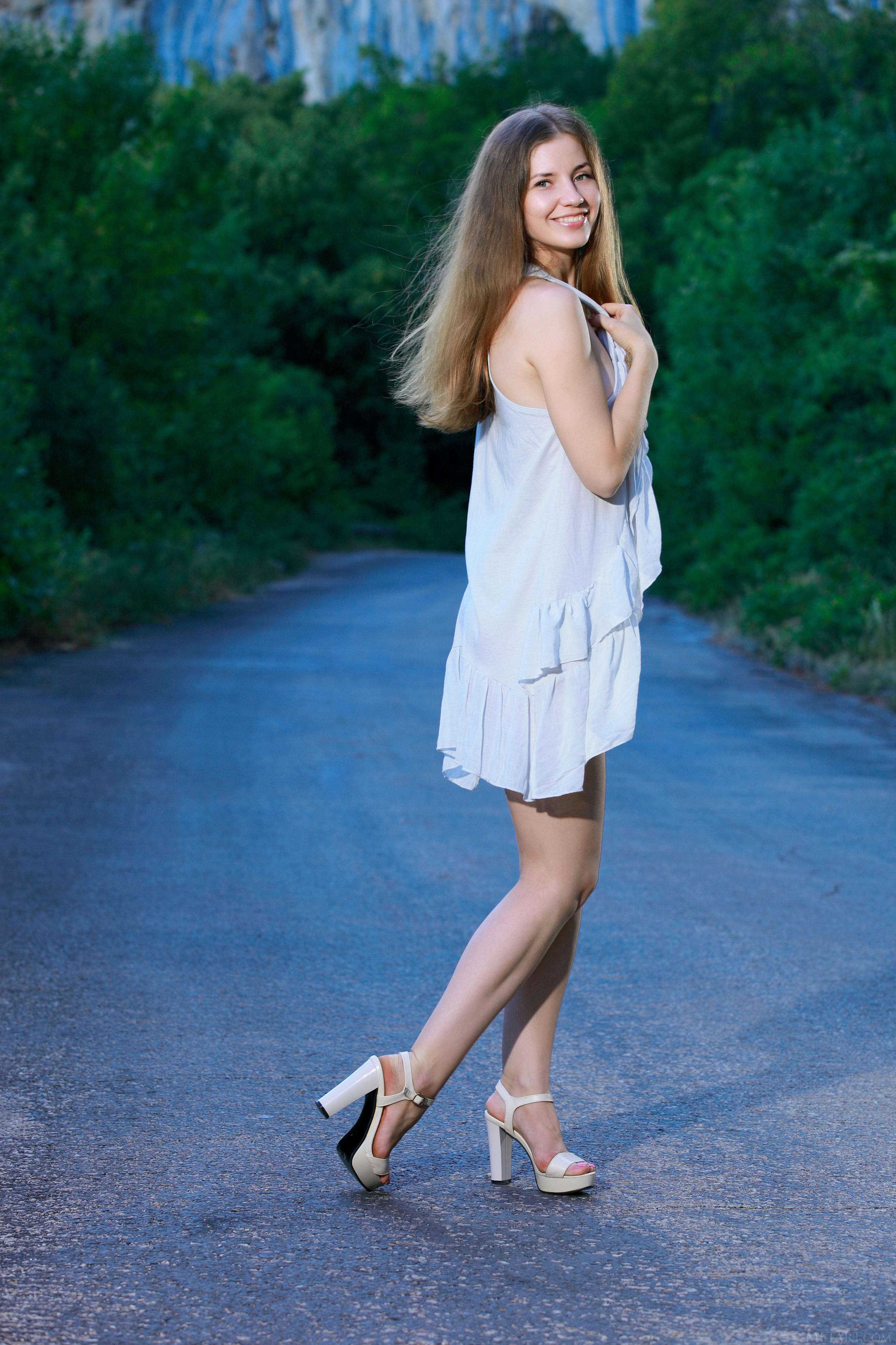 Пизда красавица снимает платье и показывает попку.