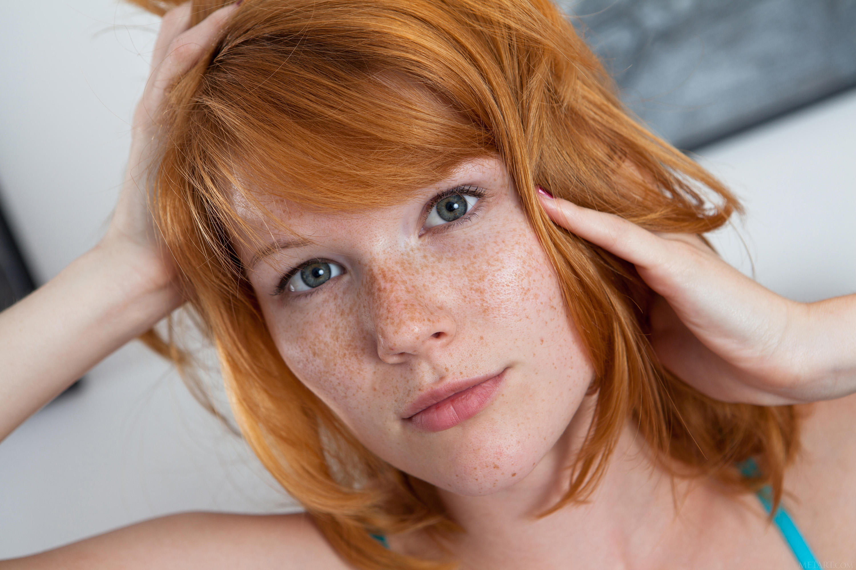 Madison Morgan (Мэдисон Морган) позирует на кожаном диване.